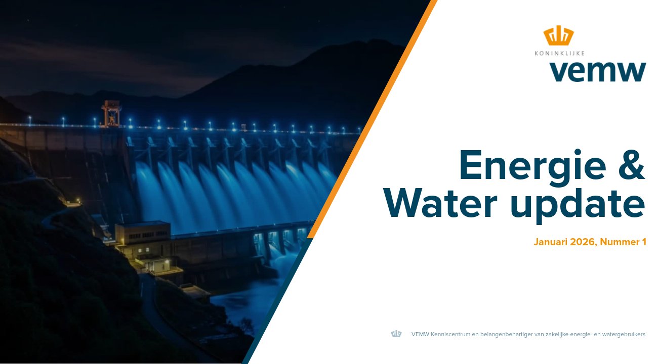 In deze editie: Energie & Water update Januari 2026, Nummer 1 VEMW Kenniscentrum en belangenbehartiger van zakelijke energie- en watergebruikers Energie & Water update Januari 2026, Nummer 1